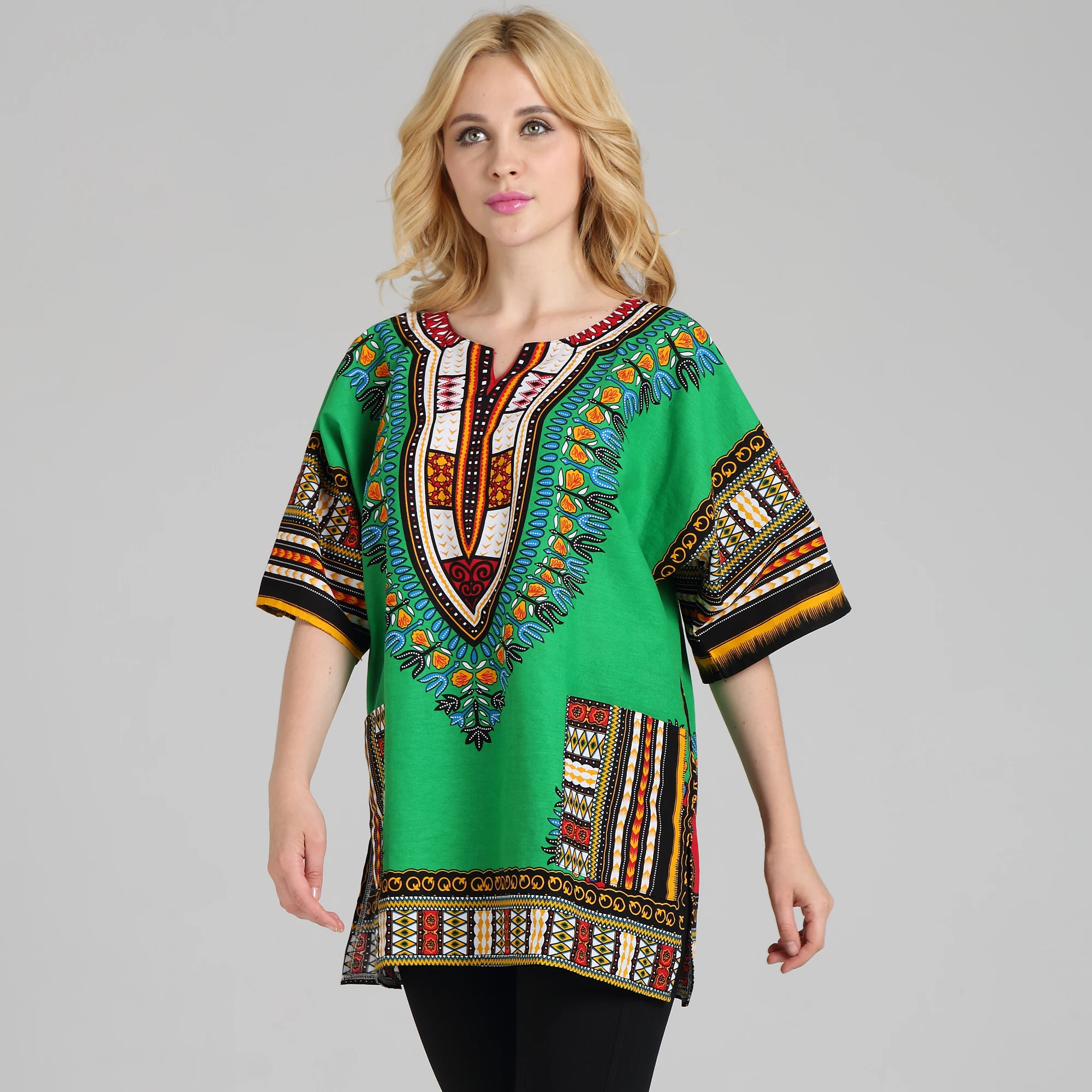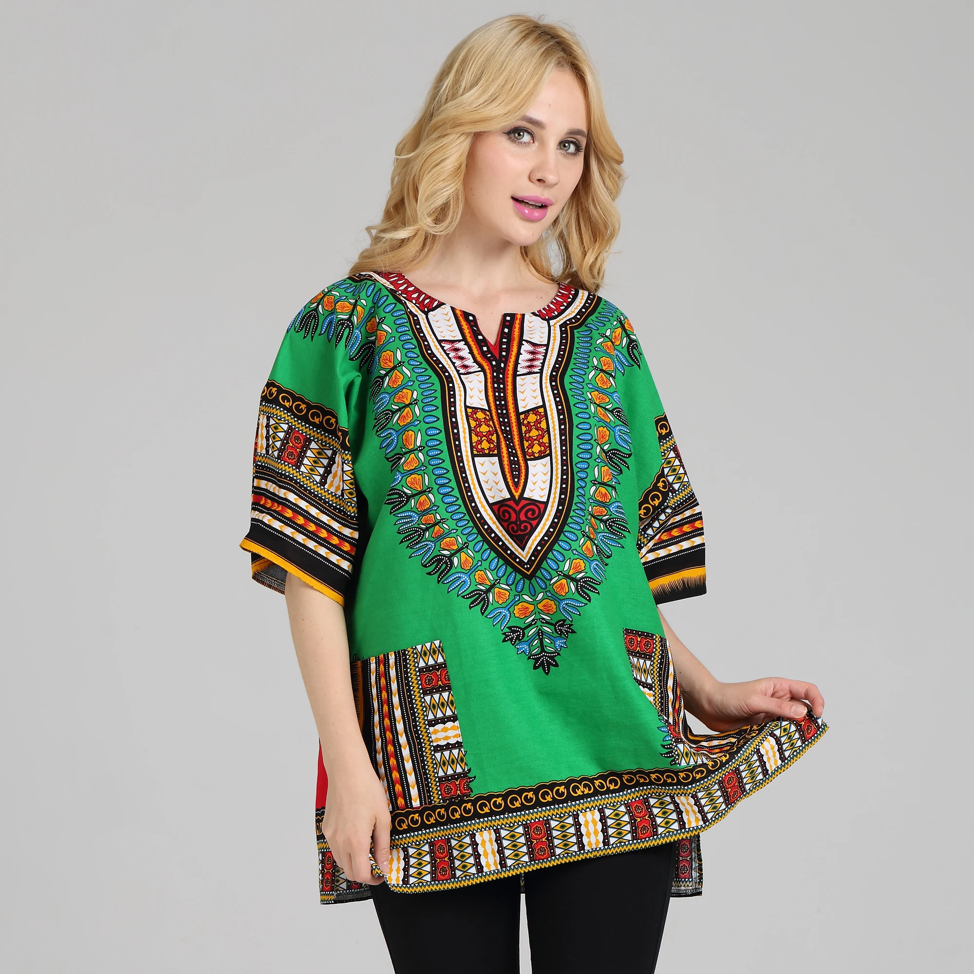 Traditional African Dashiki Shirt in Light Thin Grade Batik 100% Cotton